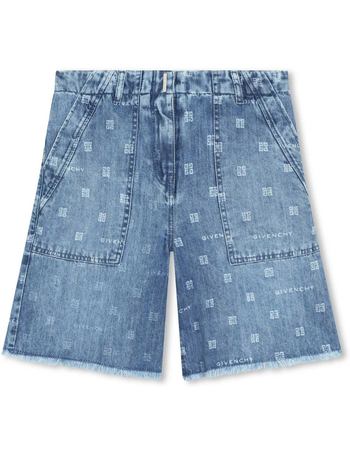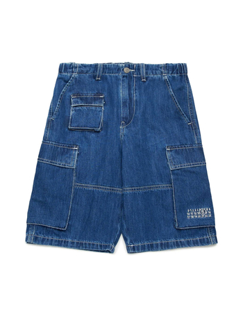 Denim Cargo Shorts With Logoed Patch