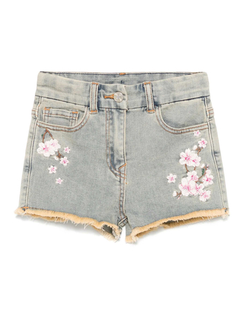 Peach Blossom Printed Denim Shorts