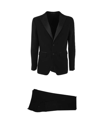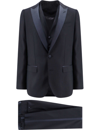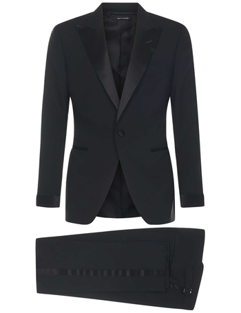 Stretch Wool Suit With Satin Profiles