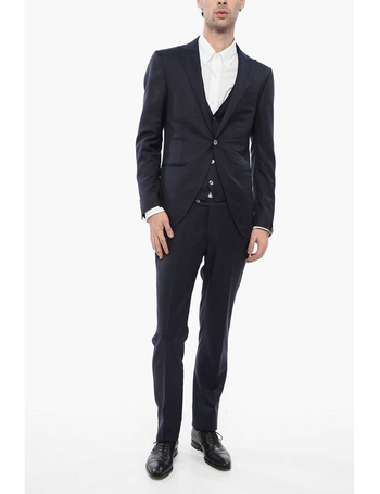 Virgin Wool And Silk Peak Lapel 3 Piece Waistcoat Suit