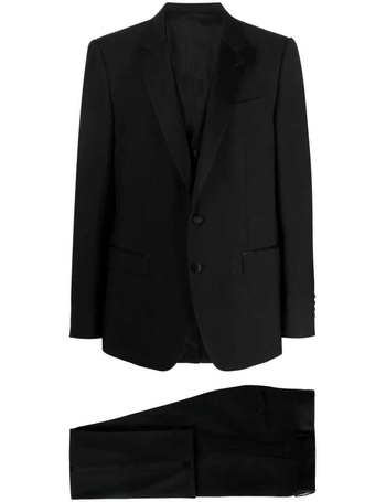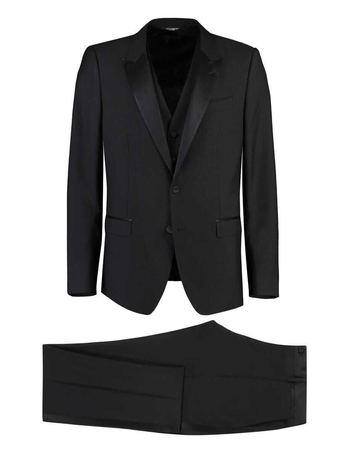 Virgin Wool And Silk 3-Button Suit With Peak Lapel