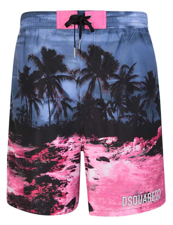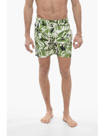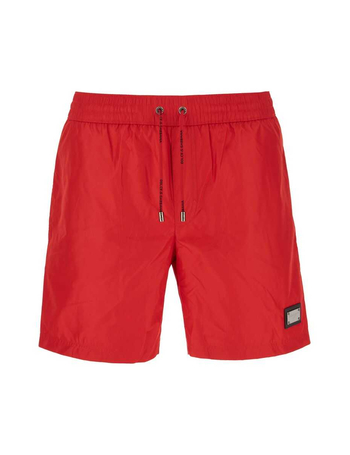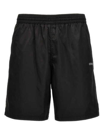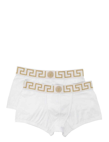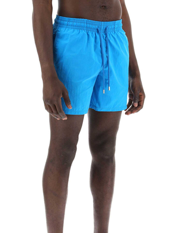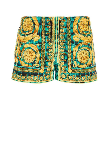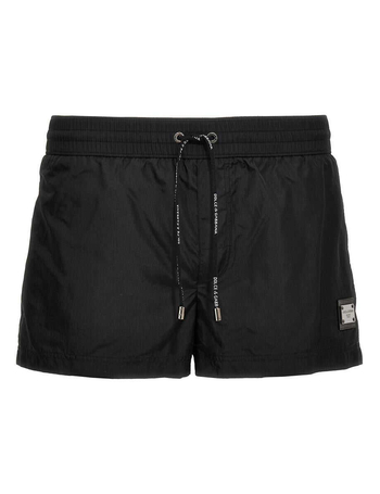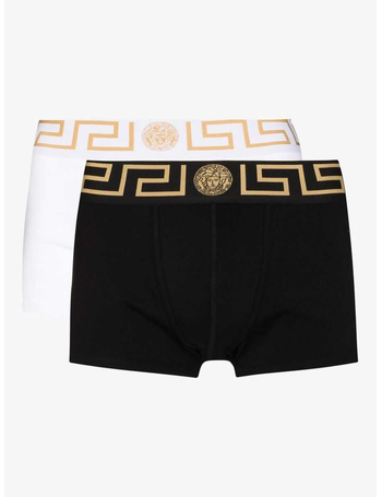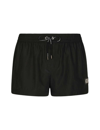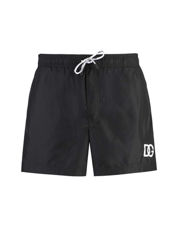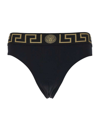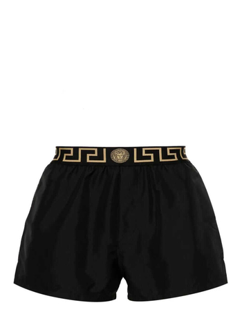 Black Swimsuit Shorts With Greca Detail In Tech Fabric Man