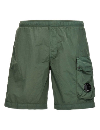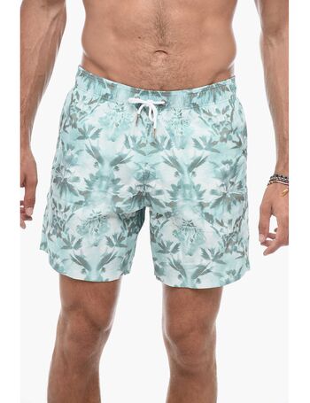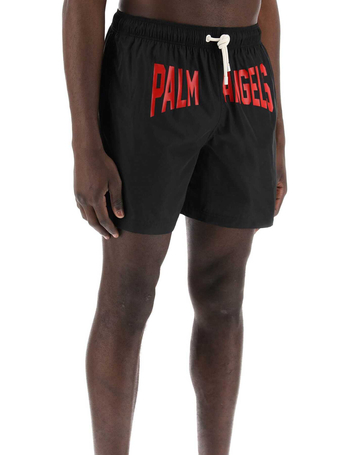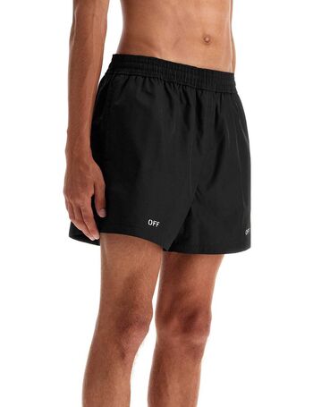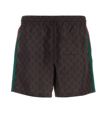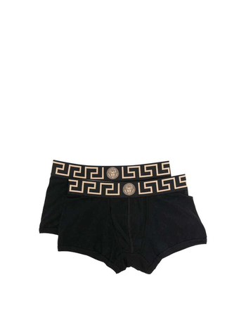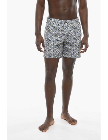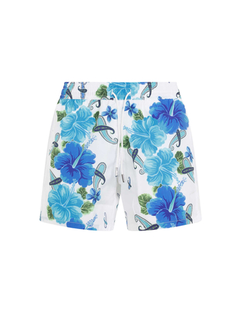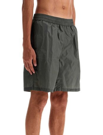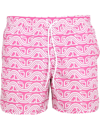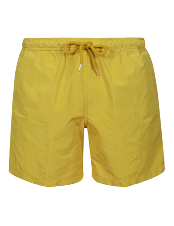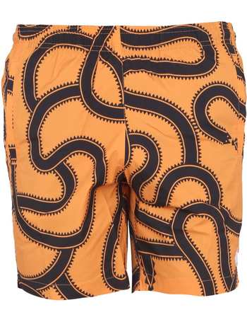 Orange Swimsuit Shorts With Greca Detail In Tech Fabric Man