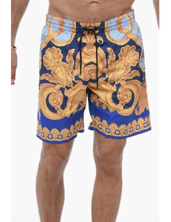 'Nautical' Blue Smiwsuit Trunks With Barocco Motif In Tech Fabric Man