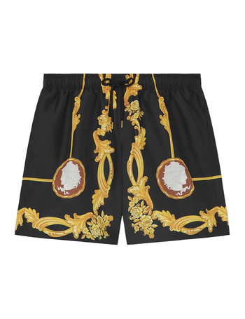 Black Swimsuit With All-Over Cameo Print In Tech Fabric Man