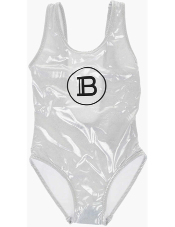 Lamé Effect One-Piece Swimsuit With Logo Print