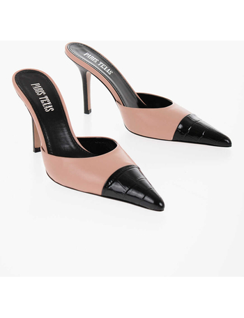 Leather Ashley Mules With Crocodile Effect Toe Heel 10cm