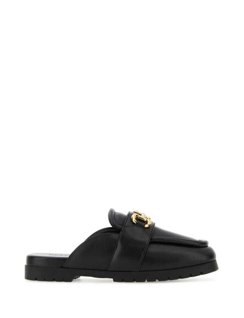 Embossed Leather Square Pop Mules With Logo Heel 8 Cm