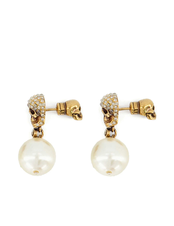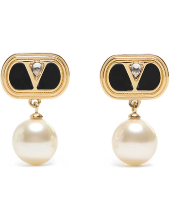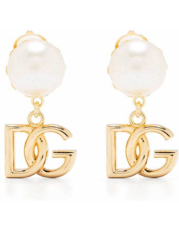 'Newton' Metallic Earings With Logo Pendant And Faux-Pearl Embellishments In Brass Woman