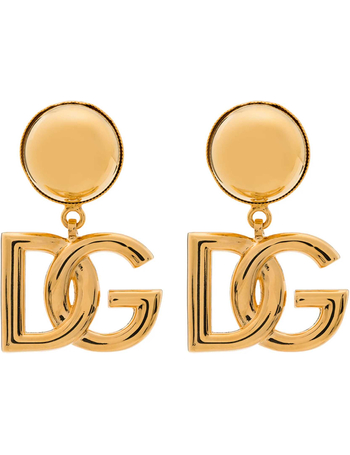 'Pop' Metallic Earings With Logo Pendant And Clip-On Closure In Brass Woman