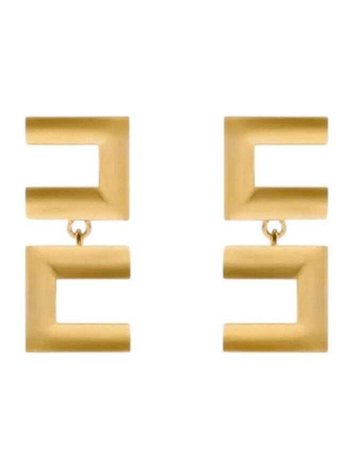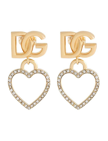Metallic Earings With Logo Plaque And Heart Pendant In Brass And Glass Woman