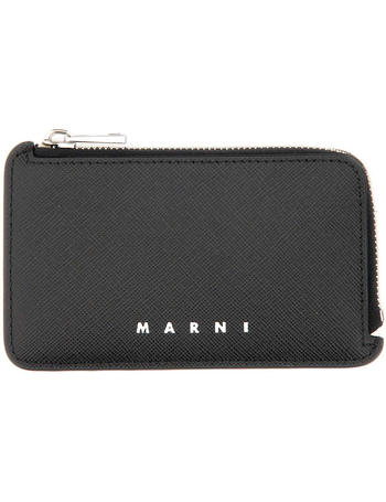 Gradient Effect Saffiano Leather Card Holder With Zip Closur