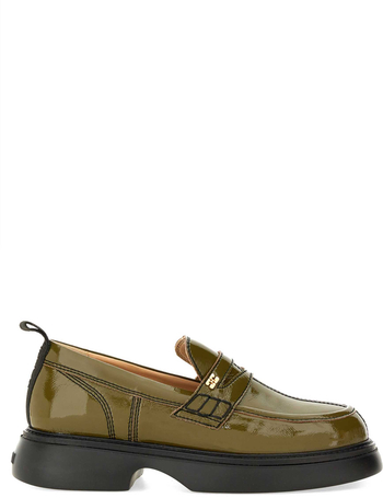 Oil Green Calfskin Loafers With Leather Sole And Gold Detail