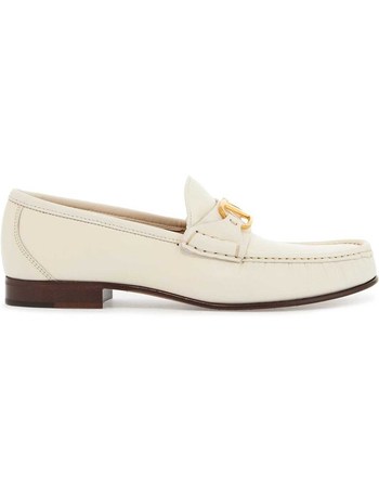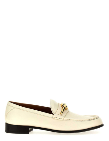 Ivory Leather Loafer With Golden Metal V Logo