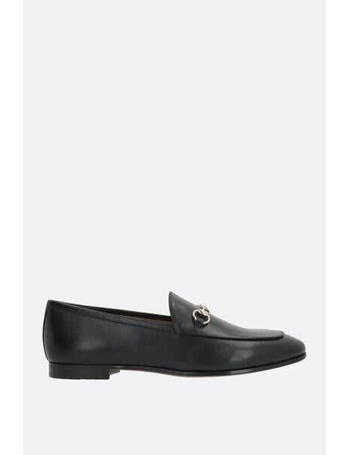 Black Calfskin Women's Loafers With Metallic Band