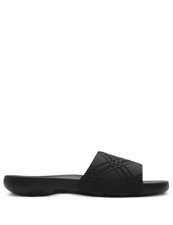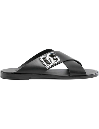 Padded Leather Fusbet Sliders With Criss Cross Design