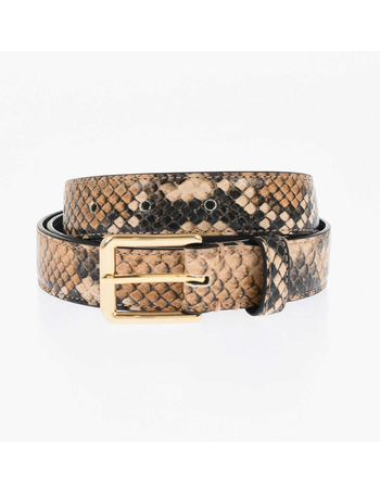 Crocodile Effect Leather Belt With Golden Buckle 25mm