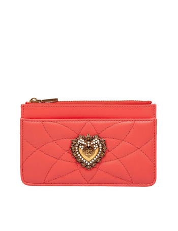 Devotion Card Holder In Coral Leather