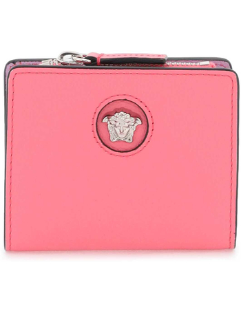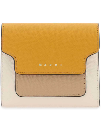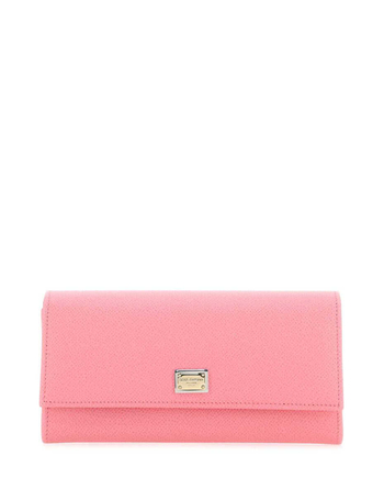 Solid Color Saffiano Leather Wallet With Golden Logo