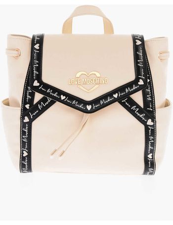 Love Contrasting Logoed Detail Faux Leather Backpack