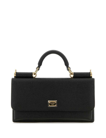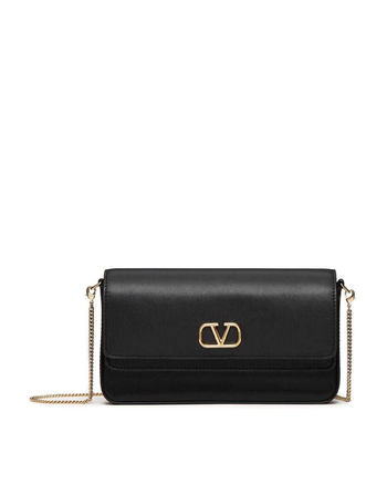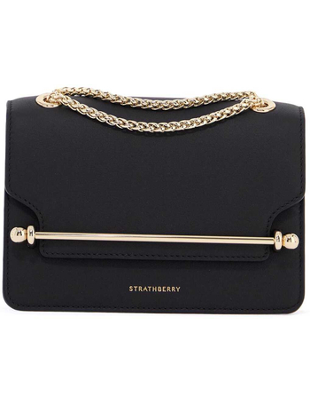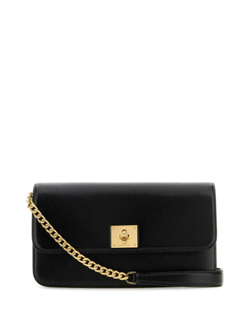 Black East/West Mini Calfskin Bag With Gold Chain