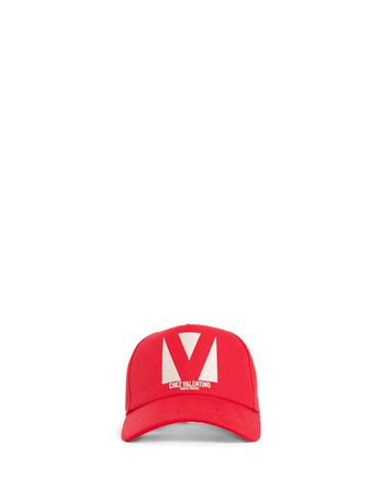 Red Baseball Cap With Maxi Logo Print On The Front And Logo Lettering On The Rear In Cotton Man