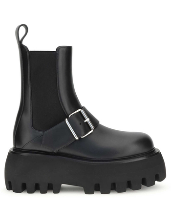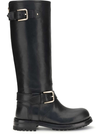 Tall Black Leather Boots With Buckle