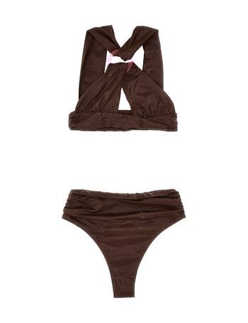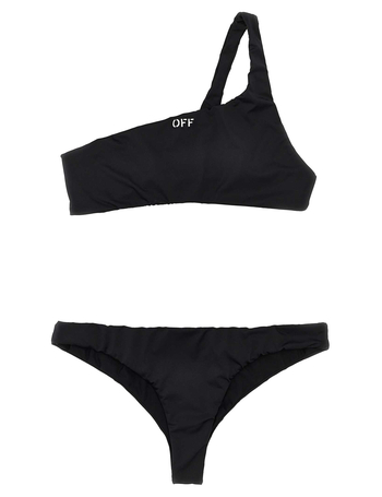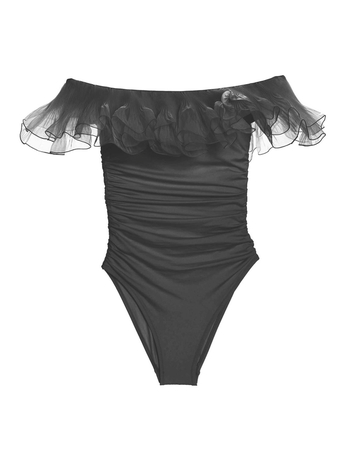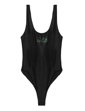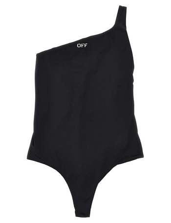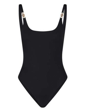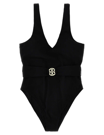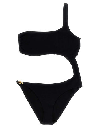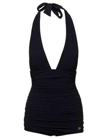 Black Gathered One-Piece Swimsuit With Logo Patch In Stretch Polyamide Woman