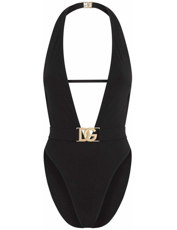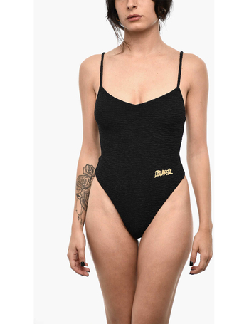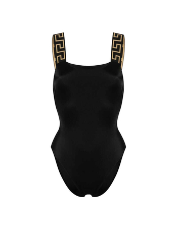 Black One-Piece Swimsuit With Greca Detail In Stretch Polyamide Woman