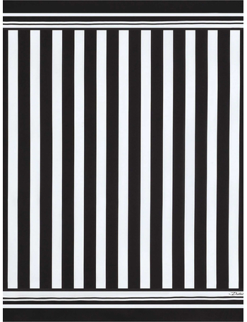 Black And White Square Scarf With Logo Lettering On The Front And All-Over Striped Motif In Silk Man