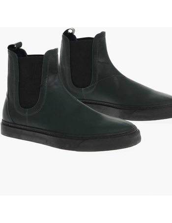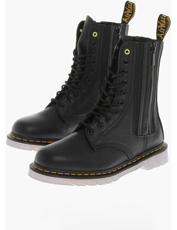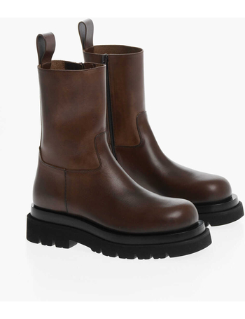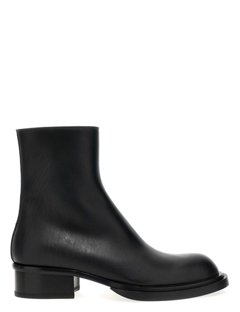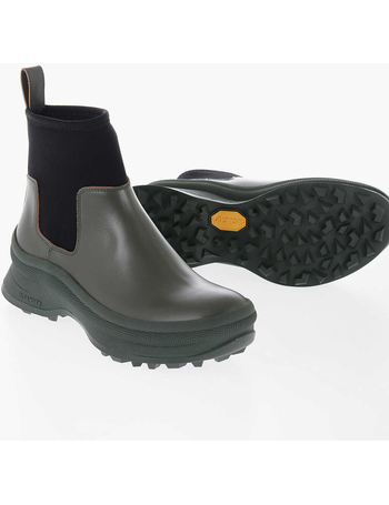 Solid Color Leather And Fabric Combat Boots With Commando So