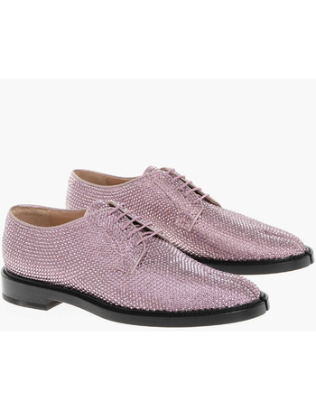 mm22 Solid Color Tabi Derby Shoes With Rhinestones Embellish