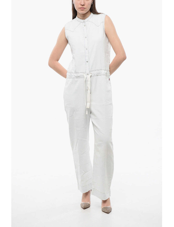 Sleeveless Denim Jumpsuit With Drawstringed Waist