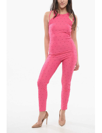 Velour Jumpsuit With Lace-Up Detail And Studs