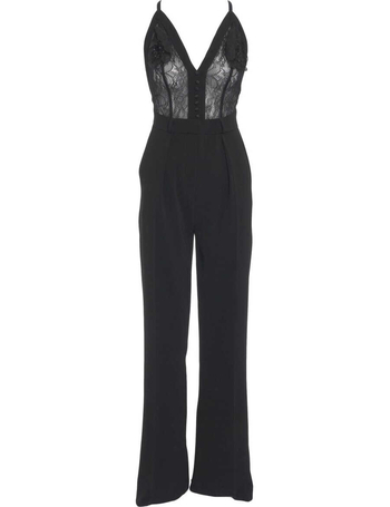 Slim Fit Jumpsuit With Mesh Insert And Organza Detail