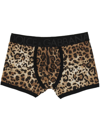 Brown All-Over Leopard Print Swimsuit Briefs In Technical Fabric Man