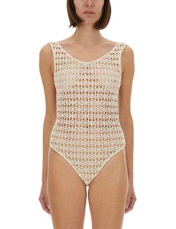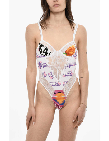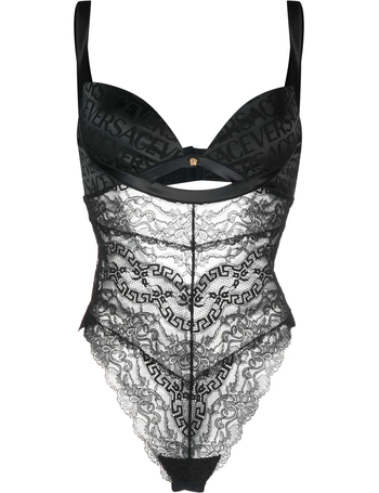 Lace Bodysuit With Logo Top And Cut-Out Detail