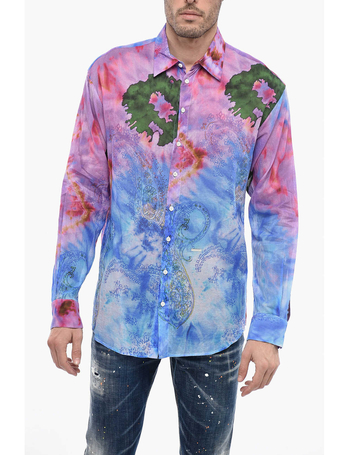 Tie Dye Cotton Shirt With Paisley Motif