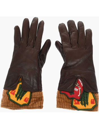Leather Gloves With Cordoroy Detail