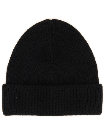 Solid Color Cashmere Beanie With Embroidered Logo
