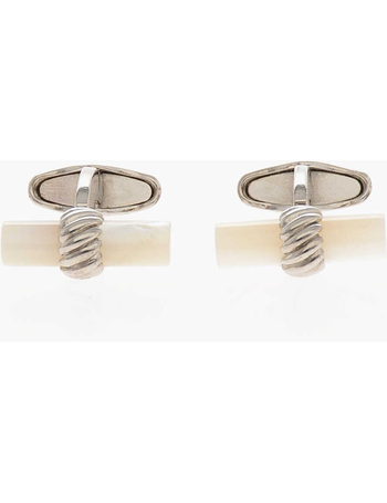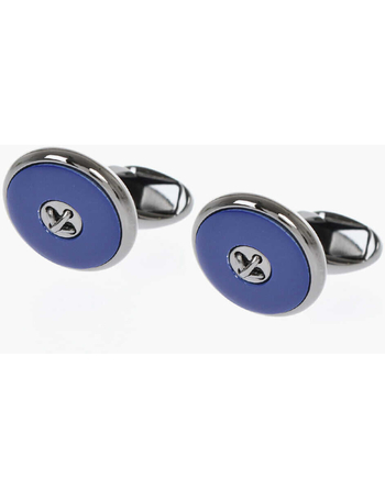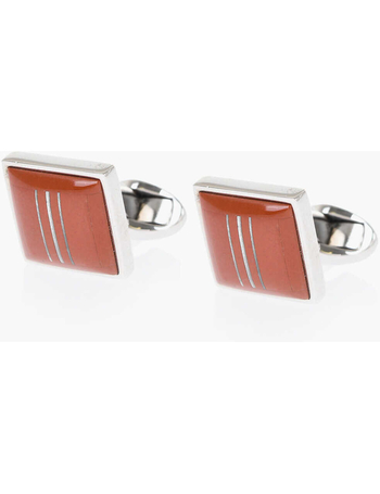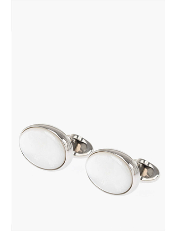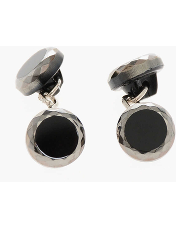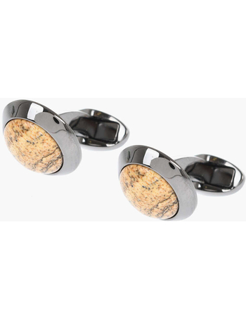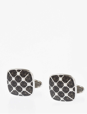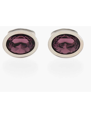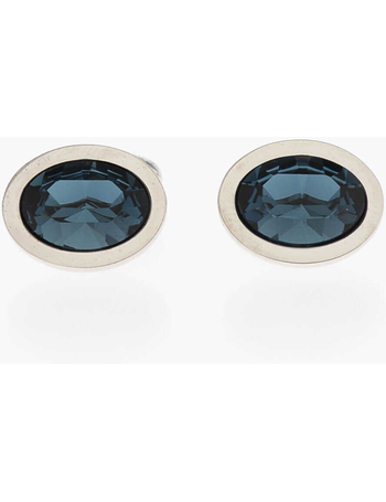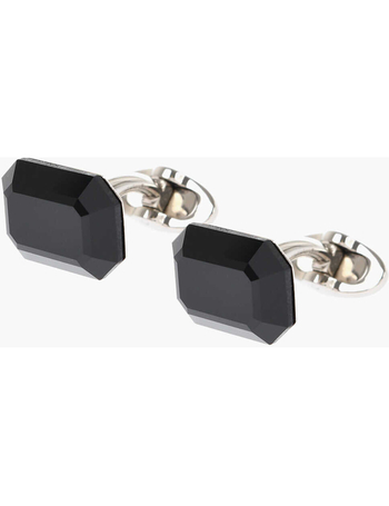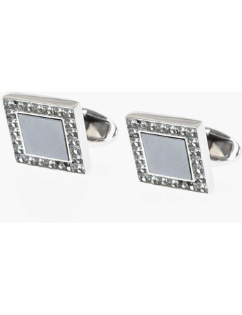 Polished Metal Cufflinks With Crystal Embellished Inserts