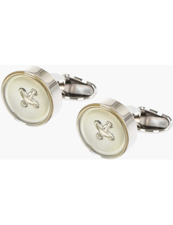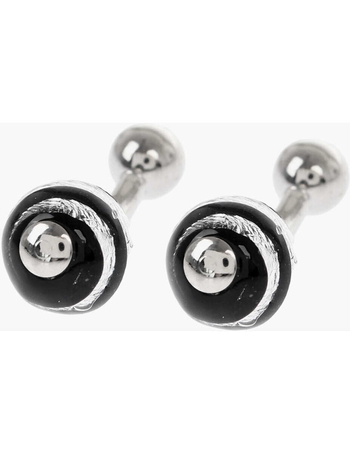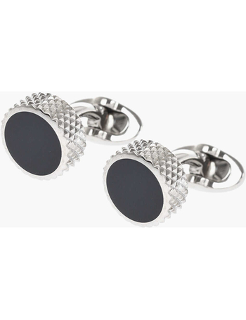 Silver-Tone Metal Round Cufflinks With Contrasting Detail