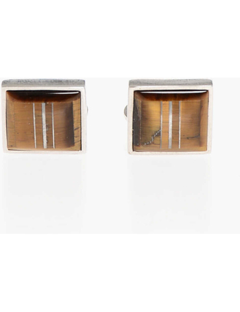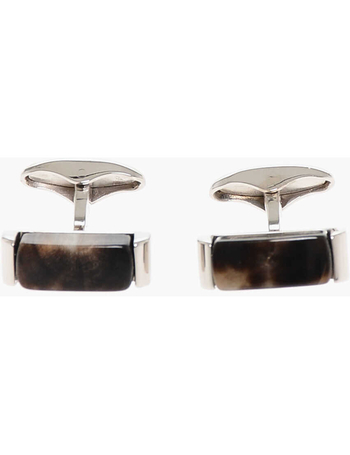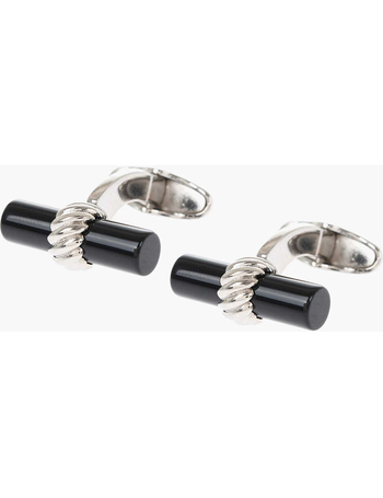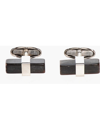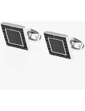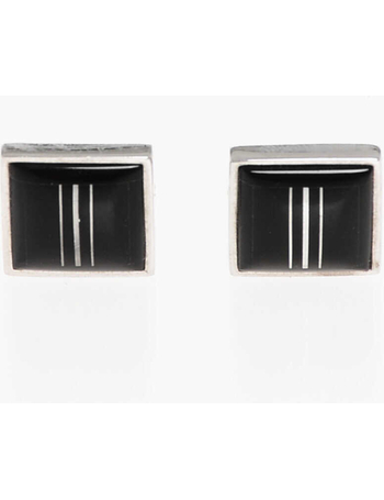 Silver-Tone Metal Rectangular Cufflinks With Onyx Stone