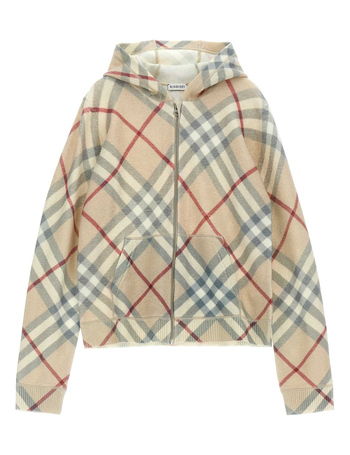 Check-Hooded Cardigan