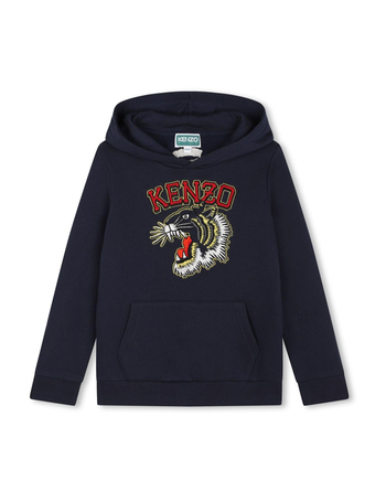 Tiger-Appliqué Knitted Hoodie