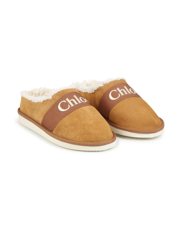 Logo-Print Strap Fleece-Texture Slippers