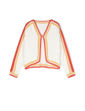 Striped Crochet-Trim Cardigan
