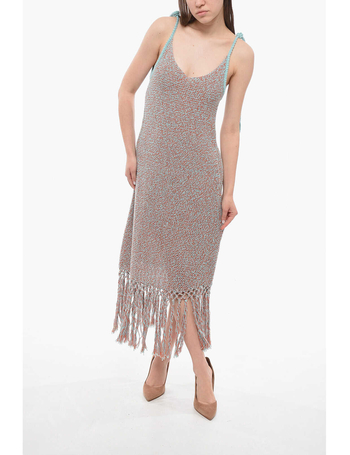 Cashemere And Cotton Hawaiian Crew-Neck T-Shirt With Fringes