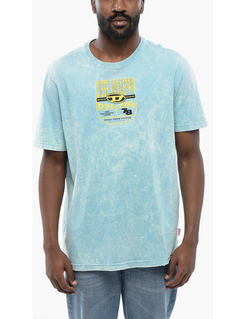 Red Tag Acid Wash Effect T-Just-n17 Crew-Neck T-Shirt With E
