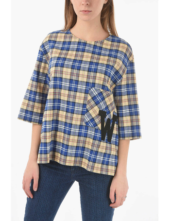 Plaid Checked Oversized T-Shirt With Maxi Monogram Patch